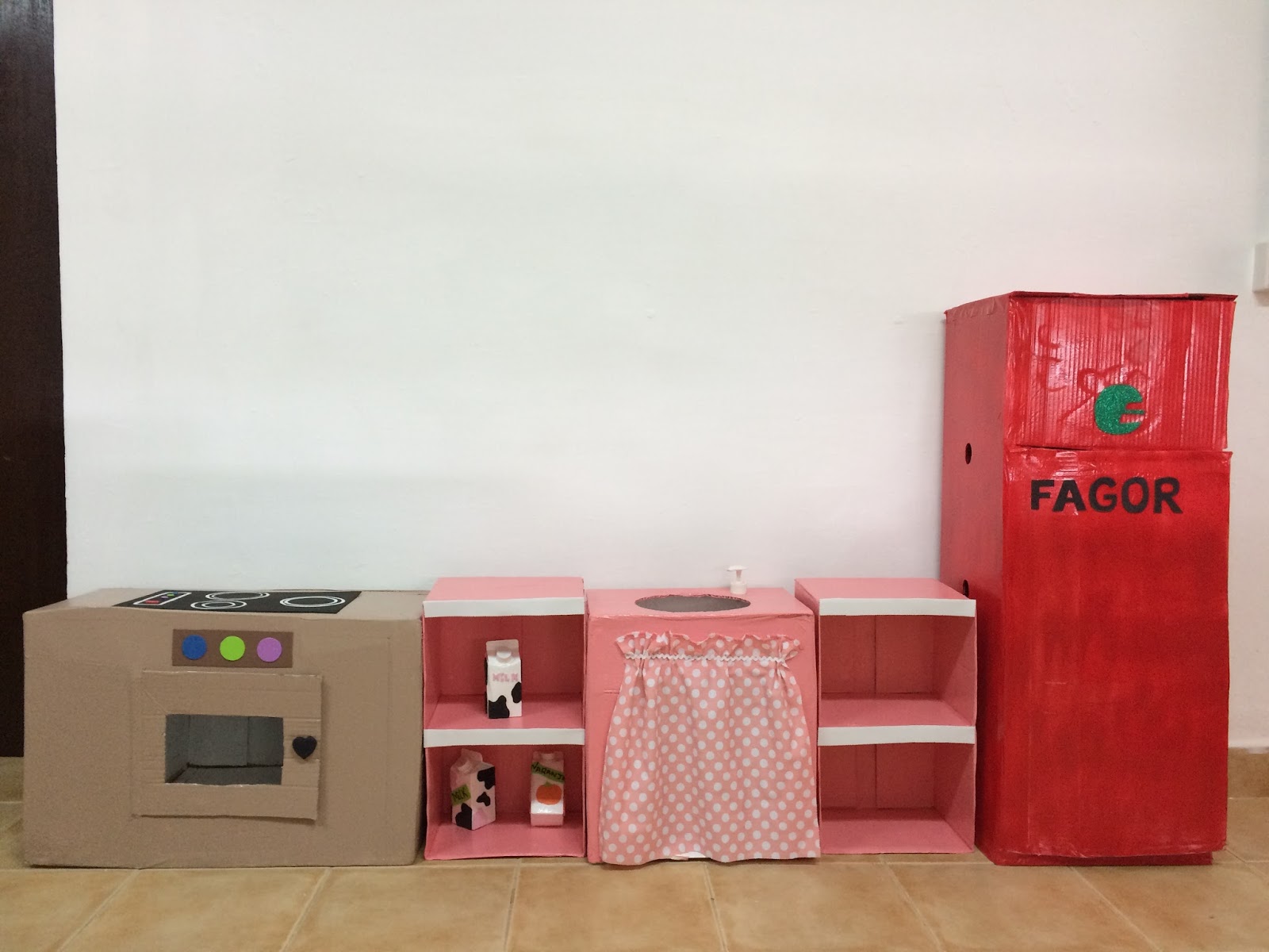 Reciclar cajas de cartón para crear esta estupenda "cocinita" ha sido un trabajo muy divertido y creativo desarrollado en el taller de Ribete.