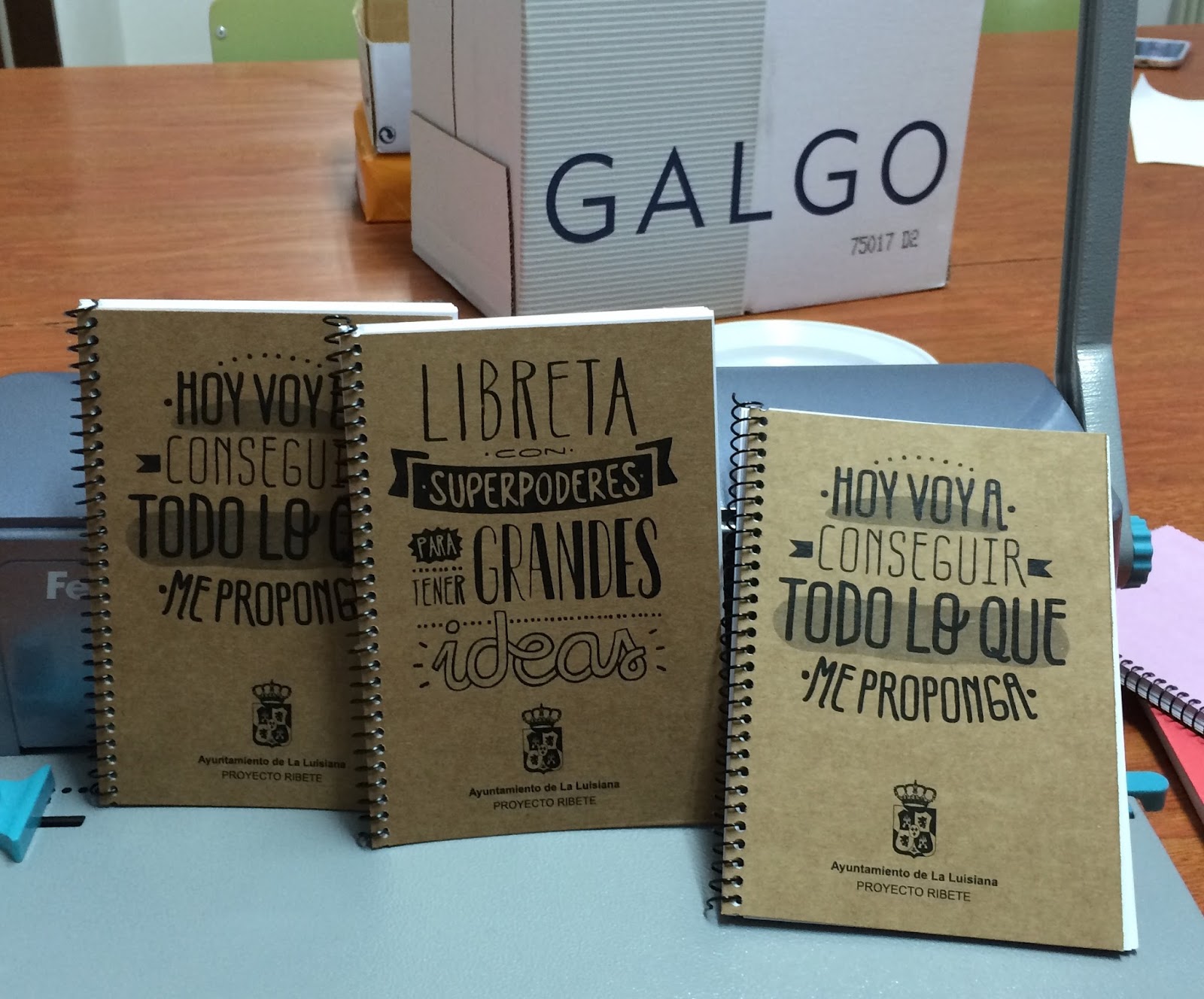 En el Taller de Ribete Creativ@, durante los meses de noviembre y diciembre de 2015, los alumnos y alumnas han llevado a cabo un taller de encuadernación. Han elaborado más de cuatrocientas libretas con mensajes divertidos y motivadores para que el Cartero Real de la localidad las reparta a todos los niños y niñas.